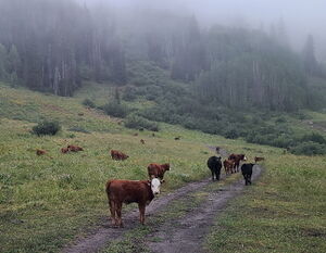 Continue downstream to where the Augusta Falls watercourse joins Poverty Gulch. Follow Poverty Gulch a short ways to the Parking location and start of Daisy Pass Trail 404. If the weather is cool enough, turn uphill and complete the short approach to descend https://ropewiki.com/Baxter_Gulch without having to take wetsuits off.