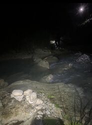 As of January 2026, we updated each anchor so there are two bolts, we added a stainless steel anchor to quite a few rusty single bolt raps. The entry rappel is the largest in the canyon, at approximately 32m from a tree CL. Be careful not to damage the sensitive stalactite features hanging from the wall. Absent of heavy rains, the flow will be low for the first several rappels. The main canyon above the spring at the drop-in is seasonally dry, however wet season conditions could add considerable waterflow. If you peer over the lip of R1 and see appreciable flow along the canyon floor - abort the descent. There will be a massive addition of water further down canyon.