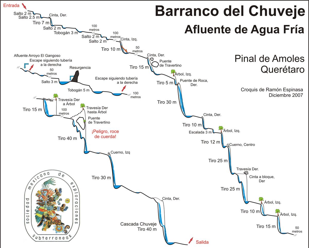 El primer descenso conocido fue realizado por miembros de la Sociedad Mexicana de Exploraciones Subterráneas (Ramón Espinasa, Ruth Diamant, Chris Lloyd, Gustavo Vela y Ana Elisa García) en diciembre de 2007