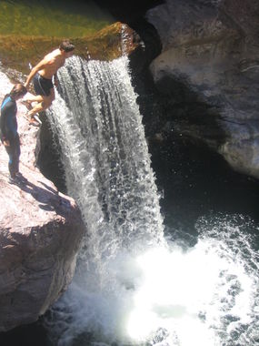 - Jump 2: 12 feet, RDC of undercut waterfall into a deep plunge pool (banner picture)