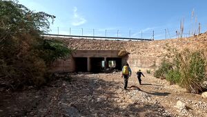 Walk down into the wash then under the highway bridge.