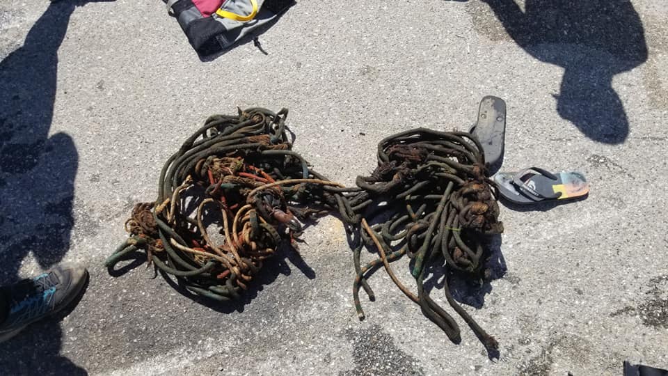 200ft of rope, rope bag, carabiners, all trash removed from the final rappel.