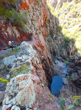 Start at Hellsgate TH. Follow road/trail 893 to Hellsgate Trail #37. Follow trail #37 to saddle above Sweetwater Tank. Head off trail to Sweatwater Tank and down small drainage to Goswick Canyon. Follow Goswick Canyon down to first rappel. There will be a few fun downclimbs along the way and possible ways to bypass some pools mostly going RDC.