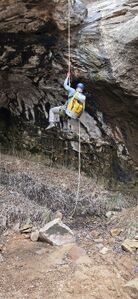 Watch the landing zones as it may contain Poison Ivy. By late Spring and throughout Summer the P.I. can be thick and completely choke off the canyon in places. There are several beginner-friendly down climbs.