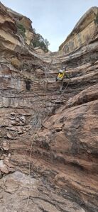 A short but fun canyon in the Colorado National Monument with free-hang rappels. The Poison Ivy (supposedly) grows thick in summer so beware. Three of the rappels land in possible Poison Ivy patches. In winter and early spring it is easily avoidable.