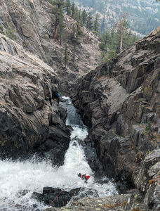 "Second descent?. This canyon was a backup plan that turned out to be a gem. Excellent conditions, though very smoky due to the Creek Fire. Water i |