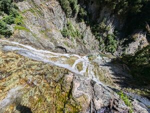 It's a very visually appealing waterfall, but in practice one hard to enjoy canyoning. Enjoyable natural anchor placements are confounded by the width & height of the falls.