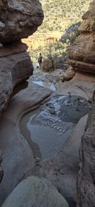 Walk a third of a mile in the stream bed with several small downclimbs.